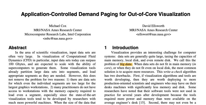 En 1997 dos investigadores de la NASA, Michael Coxs y David Ellsworth, quizás pudieron ser los primeros en utilizar la expresión Big Data en un estudio sobre el flujo del aire alrededor de un avión. Lo llamaron “el problema del big data”. Un poco más tarde, en 2005, Roger Mougalas, de O’Reilly Media se atrevió con la primera definición en su contexto actual y Wikipedia todavía le honra manteniéndola: conjunto de datos tan grandes y complejos, que precisan de aplicaciones informáticas no tradicionales de procesamiento de datos para tratarlos adecuadamente.